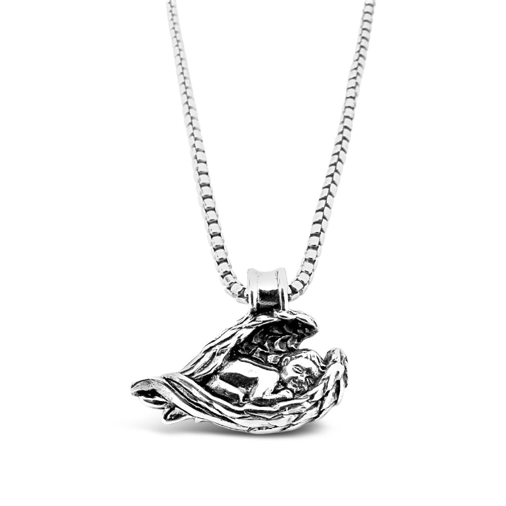 When I originally designed this, I had intended it to be for expecting mothers or new mothers, not even thinking the dual nature of the design. The whole design was about the warmth, safety and security a baby feels with the loving embrace of their mother - that's what the wings represented. I honestly did not take the wings literally as angel wings, other than the notion that it's "your little angel."